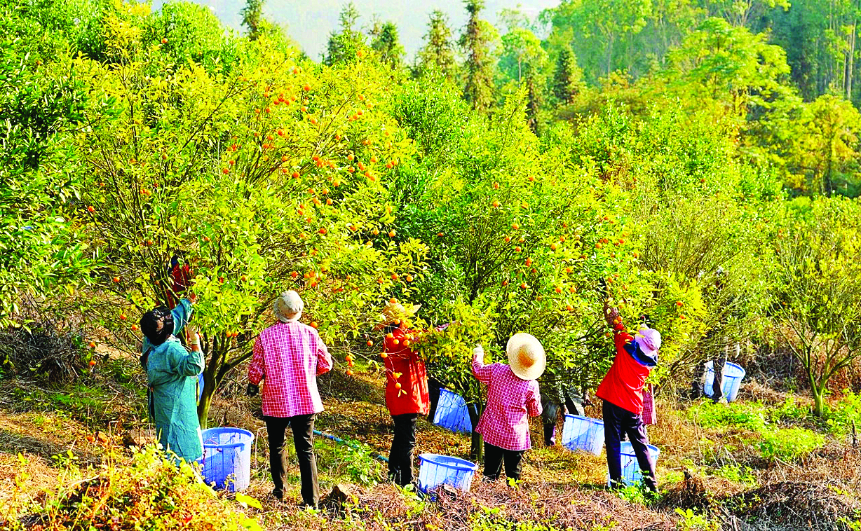 為了提高年桔的產(chǎn)量和品質(zhì),梁房金每年都會(huì)學(xué)習(xí)提高果園管理技術(shù)。他聘請(qǐng)了當(dāng)?shù)卮迕駚砉芾砉麍@,為果樹施肥、修剪枝葉、采收果實(shí)等,不僅提高了果園的生產(chǎn)效率,也為當(dāng)?shù)卮迕裉峁┝司蜆I(yè)機(jī)會(huì),增加了他們的家庭經(jīng)濟(jì)收入。