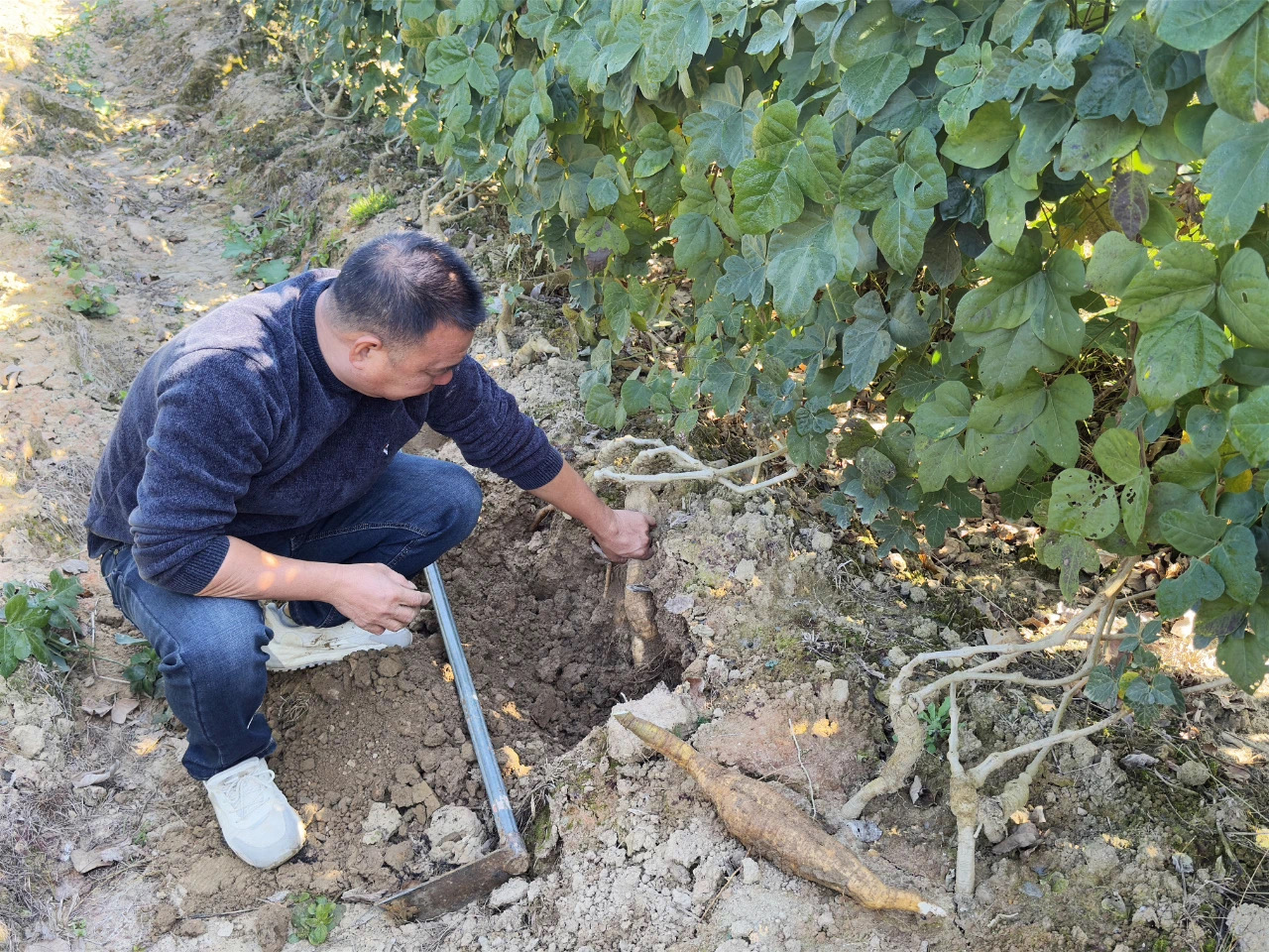 東埔村種植粉葛已多年,這里產(chǎn)的粉葛皮薄肉厚、清甜無渣,深受市場(chǎng)歡迎。廖衛(wèi)光是當(dāng)?shù)氐姆鄹鸱N植大戶,也是龍門縣醇香粉葛專業(yè)合作社理事長(zhǎng)。他告訴記者,東埔村獨(dú)特的砂質(zhì)土壤非常適合粉葛種植,因此這里出產(chǎn)的粉葛品質(zhì)上乘。今年,合作社種植了約200畝粉葛,目前銷售價(jià)格每斤7至8元。得益于良好的土壤條件和科學(xué)的種植技術(shù),今年粉葛的產(chǎn)量和質(zhì)量都相對(duì)穩(wěn)定。