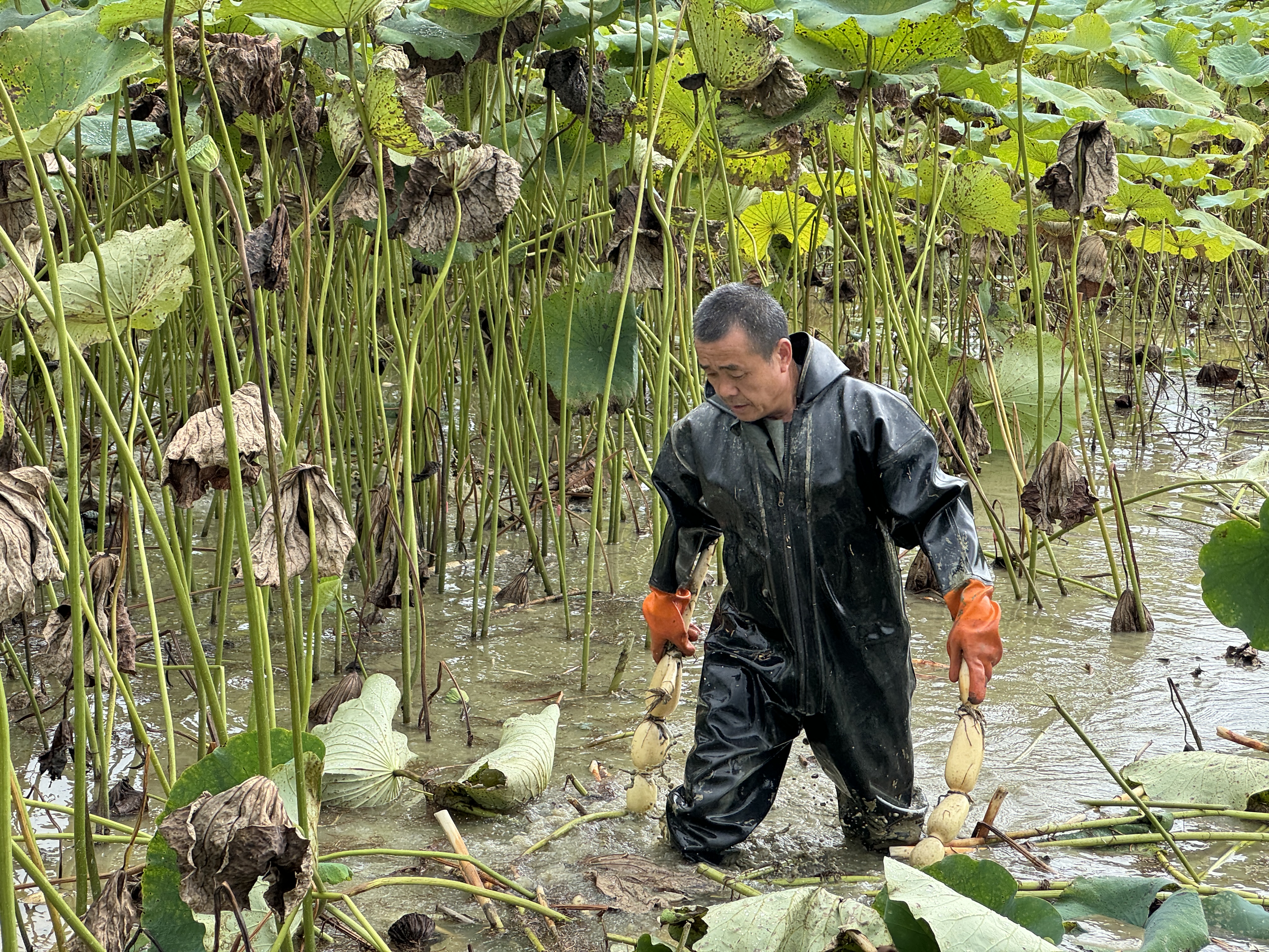 藕農(nóng)采收蓮藕。 惠州日報記者黃尉宏 通訊員惠陽融媒 攝