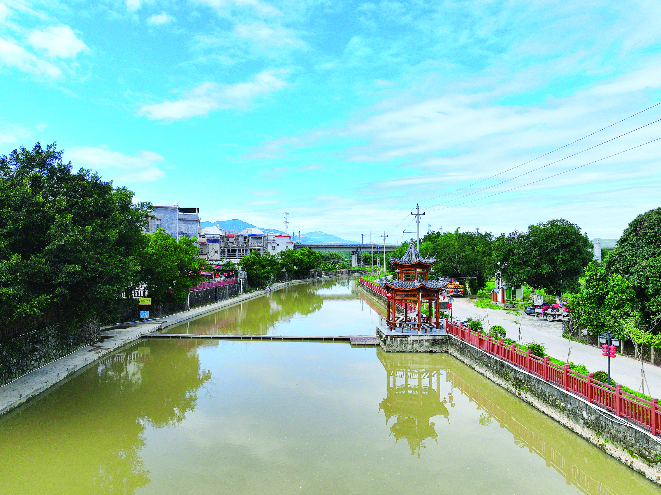 平政村河邊的棧道、涼亭成為村民休閑娛樂好去處。 惠州日報記者賴金朗 通訊員胡瓊 攝