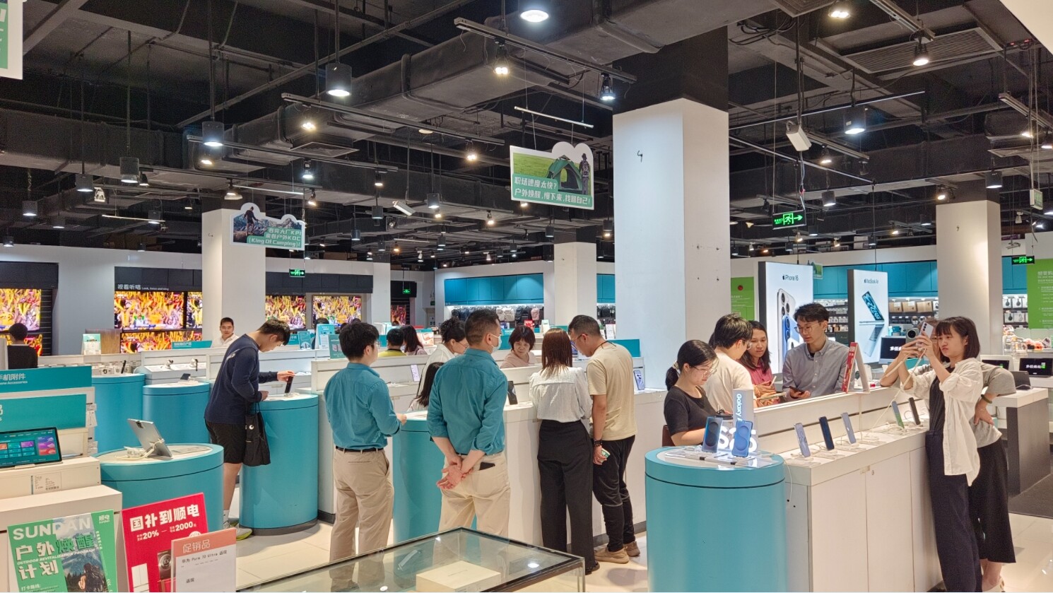 4月7日晚8時(shí)許,記者來到位于華貿(mào)天地四樓的順電電器惠州店,晚飯時(shí)間剛過,店內(nèi)開始不斷上客,家電區(qū)、手機(jī)區(qū)都有10來批客戶在參觀選購。“剛過去的清明小長假,以及整個(gè)今年第一季度,店里的家電、手機(jī)類銷售一直保持著較快的增速,尤其是手機(jī)3C類!表橂婋娖骰葜莸甑昝嬷鞴茳S福海告訴記者,初步測算,今年第一季度,惠州店的銷售額同比增長30%左右,而手機(jī)類更高,增幅預(yù)計(jì)在50%~60%。