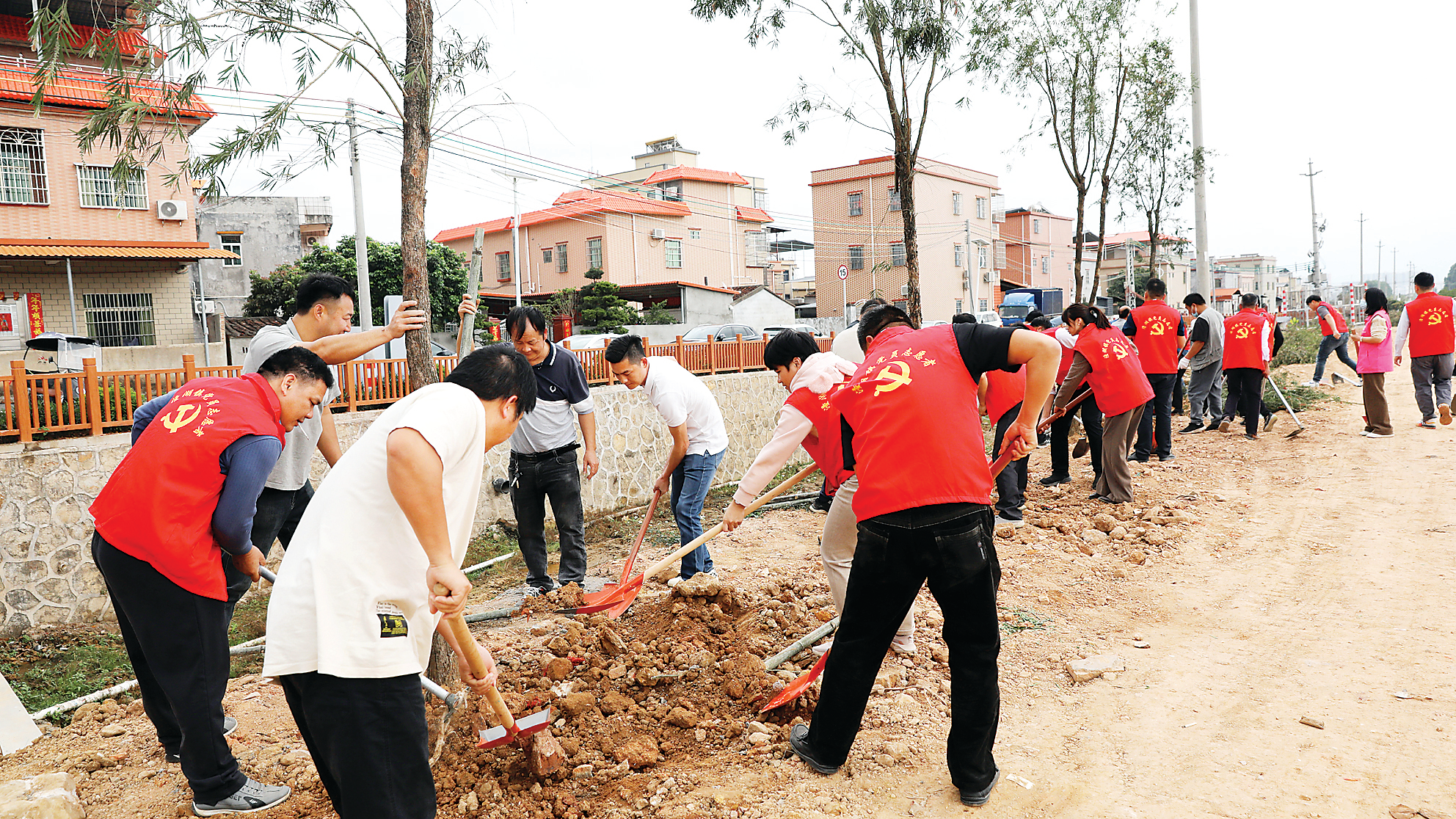 黨員干部在潼湖鎮(zhèn)赤崗村參加義務(wù)植樹活動。