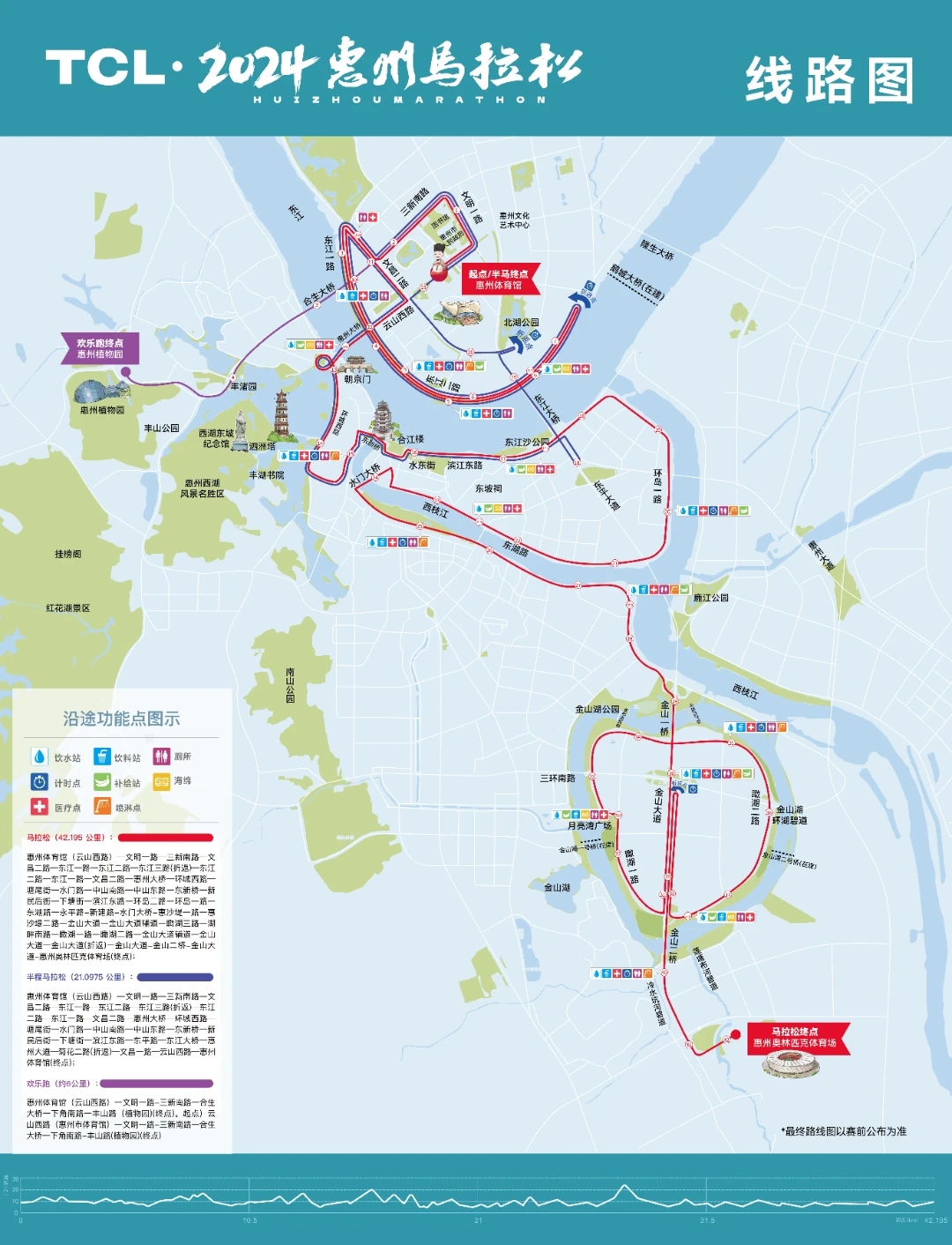 2024惠州馬拉松全程、半程、歡樂跑路線示意圖。