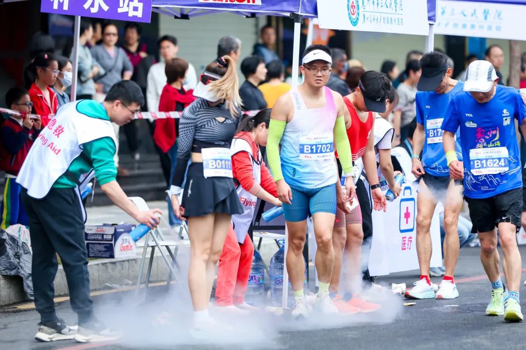 “選手們,請(qǐng)往這邊走!”“辛苦了!”“這是屬于你們的獎(jiǎng)牌和獎(jiǎng)品!”離馬拉松完賽通道還有30米,記者就聽到志愿者們熱情地引導(dǎo)每一位選手來到完賽區(qū),為選手鼓掌,并為選手們掛上獎(jiǎng)牌、送上補(bǔ)給物資。