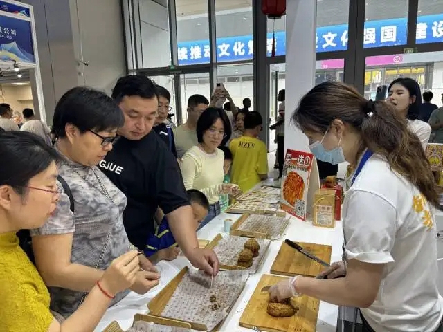 在惠州館非物質(zhì)文化遺產(chǎn)大賣場區(qū),郭師傅月餅展區(qū)很受追捧,很多觀眾在現(xiàn)場品嘗之后紛紛下單,將惠州非遺美味帶回家。