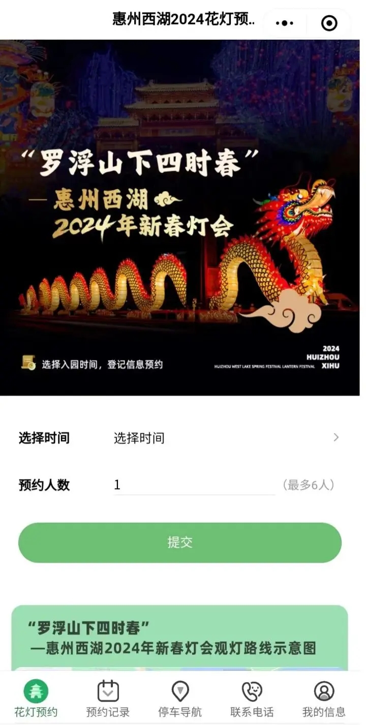 。ǘ2024年2月7日至2月24日亮燈期間(18:30-22:30)實(shí)施預(yù)約入園制(分時(shí)段預(yù)約通行,每日預(yù)約名額提前3天放出),每小時(shí)預(yù)約1萬(wàn)人次,每晚預(yù)約總量4萬(wàn)人次。同一手機(jī)號(hào)最多可預(yù)約6人,可隨時(shí)取消預(yù)約。預(yù)約成功后在相應(yīng)時(shí)段從平湖門(mén)或小北門(mén)入口入園,未預(yù)約成功無(wú)法入園。