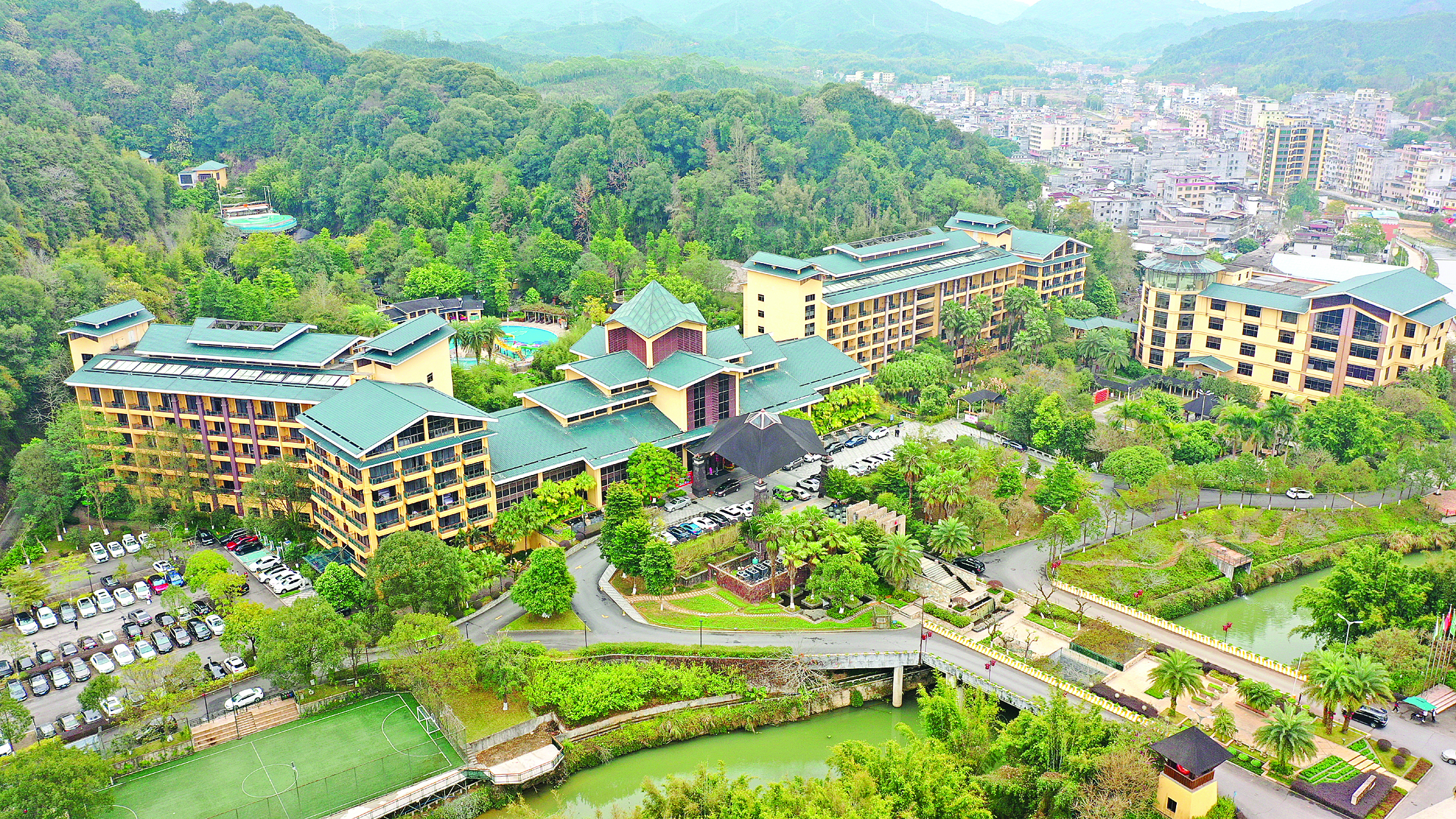 桂峰山下,是常年流淌的溫泉水。1960年,廣東省醫(yī)學(xué)科學(xué)院礦泉研究室專家曾到地派勘測(cè),認(rèn)為地派溫泉水質(zhì)好,又離圩鎮(zhèn)近,若通過(guò)鉆探提高水溫和流量,很有經(jīng)濟(jì)價(jià)值。2010年,地派鎮(zhèn)的首張旅游王牌——地派溫泉森林度假區(qū)(以下簡(jiǎn)稱“地派溫泉”)建成營(yíng)業(yè),至今,仍是龍門最受游客歡迎的溫泉度假區(qū)之一。