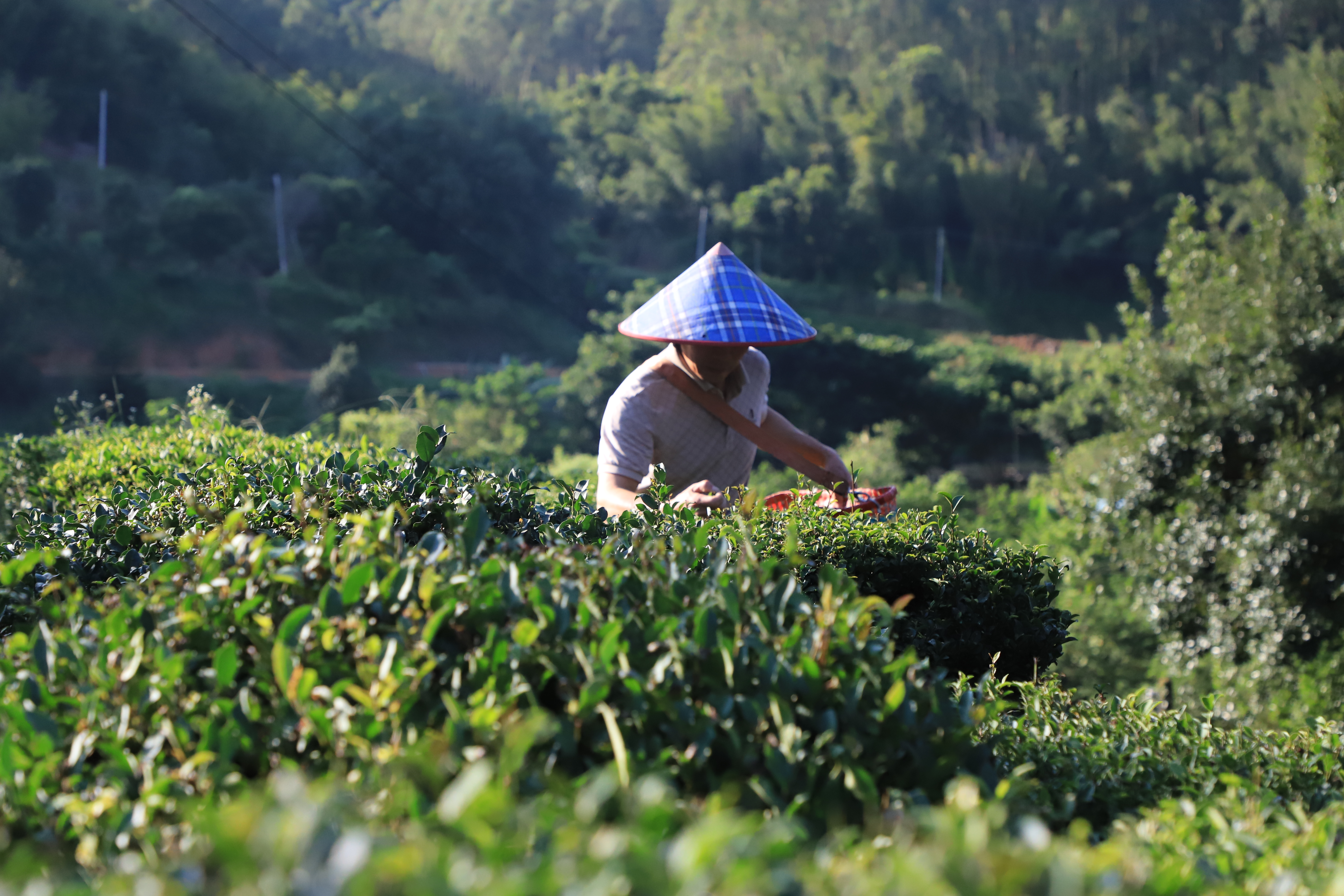 驅(qū)車沿著蜿蜒曲折的水泥山路進(jìn)入仙人跡村民小組,頓感空氣清新,綠水青山讓人心曠神怡。經(jīng)過一段田間小路,來到一座小山嶺,小山嶺上層次分明地種著山茶。吸收了春天雨露的山茶綠油油的,鐘金如戴著草帽、挎著茶簍子正在采摘茶葉。茶林里不只是茶樹,還有一些雜樹。鐘金如說:“多樣性的樹木花草能提高茶青品質(zhì)!睆淖孑吰,他家里就開始種茶,他從小喜歡采茶,如今種茶已有30多年。