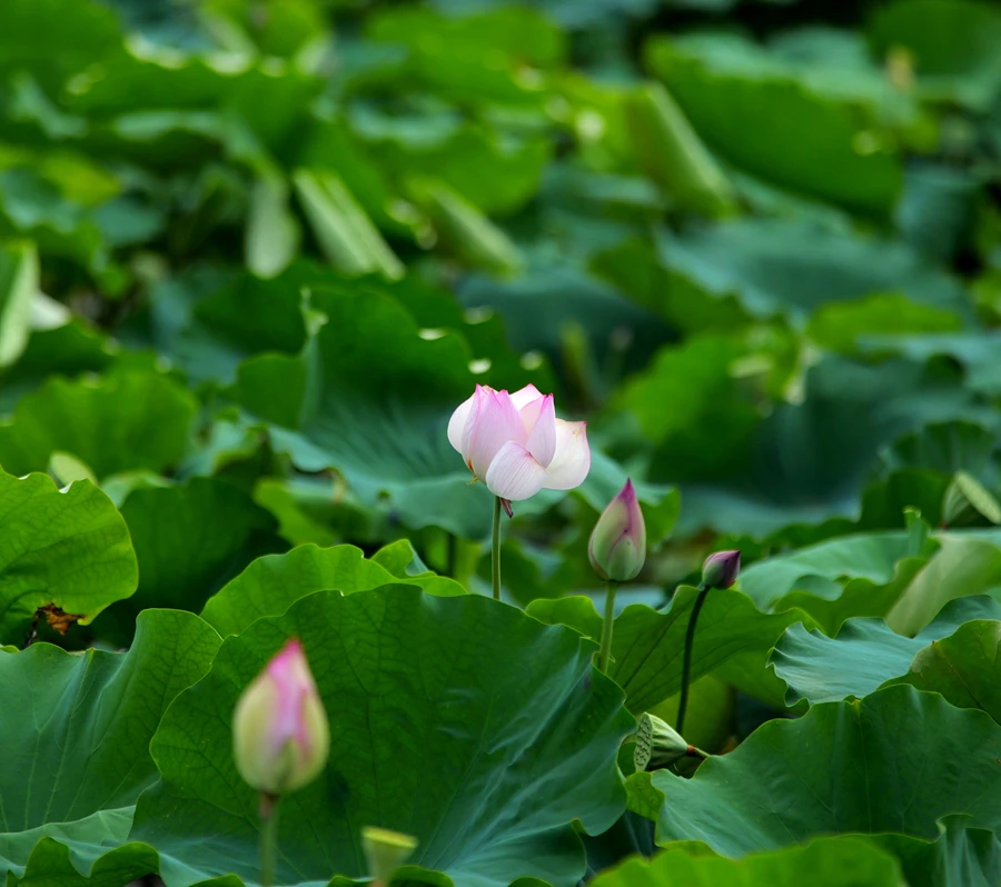 夏日炎炎,荷花含苞待放。