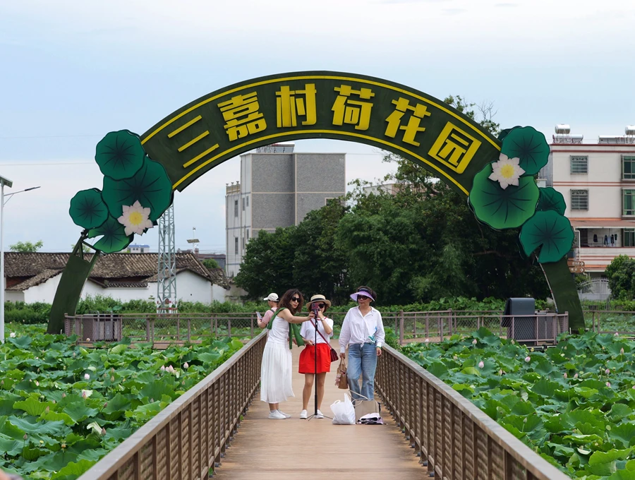 據(jù)悉,三嘉村是廣東省“百千萬工程”首批典型村。近年來,三嘉村以“荷”為媒,從發(fā)展特色產(chǎn)業(yè)、人居環(huán)境整治、文明實(shí)踐活動(dòng)等多個(gè)方面入手,探索出“荷”美鄉(xiāng)村,花開富農(nóng)的新路徑。