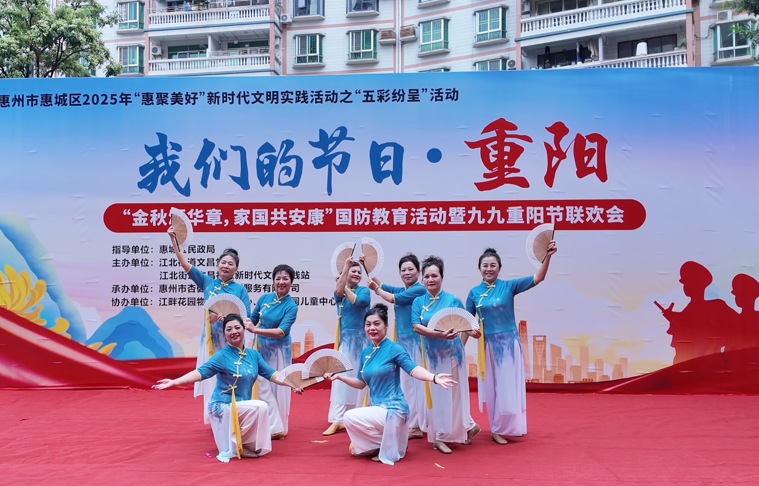 歲歲重陽(yáng),今又重陽(yáng),濃濃敬老情滿社區(qū)。近日,在惠城區(qū)民政局的指導(dǎo)下,由江北街道文昌黨委、江北街道文昌社區(qū)新時(shí)代文明實(shí)踐站主辦,惠州市杏健居家養(yǎng)老服務(wù)有限公司承辦的 “我們的節(jié)日·重陽(yáng)節(jié)” 文藝匯演,在江畔花園文化廣場(chǎng)溫馨啟幕。近 200 名社區(qū)長(zhǎng)者與居民歡聚一堂,共慶佳節(jié),在歡聲笑語(yǔ)中感受社區(qū)大家庭的暖心關(guān)懷。