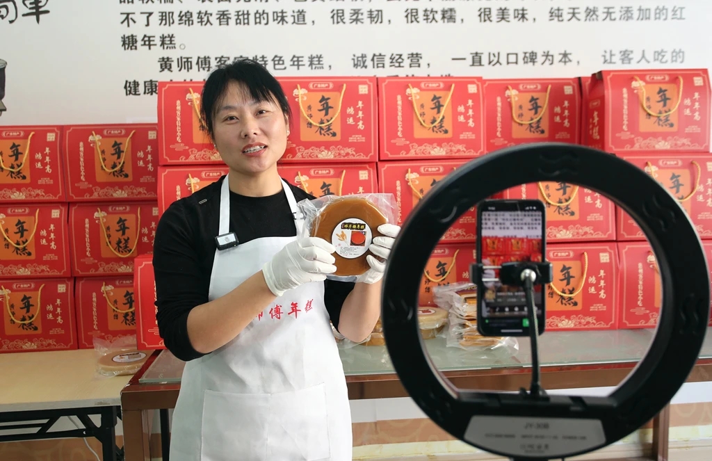 為了將年糕銷往全國各地,黃師傅年糕作坊還在直播平臺銷售年糕。