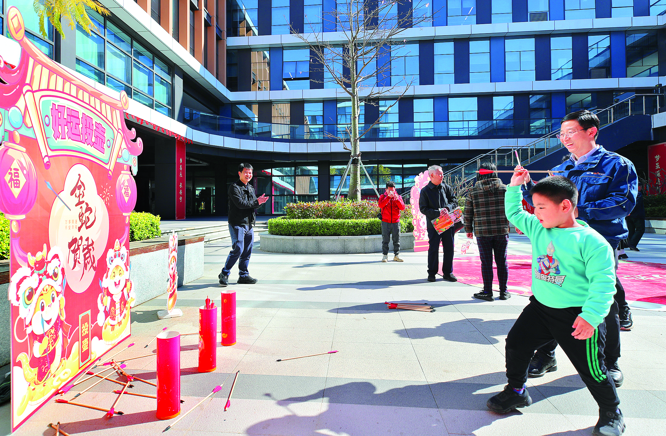 喜氣的春聯(lián)和福字貼起來,紅彤彤的新年裝飾掛起來,“大國工程”項(xiàng)目工地一派喜氣洋洋!吧摺眮磉\(yùn)轉(zhuǎn)圈中幸運(yùn)、好運(yùn)投壺金蛇賀歲等趣味游園活動(dòng),吸引建設(shè)者和家屬們積極參與其中,歡聲笑語不斷。