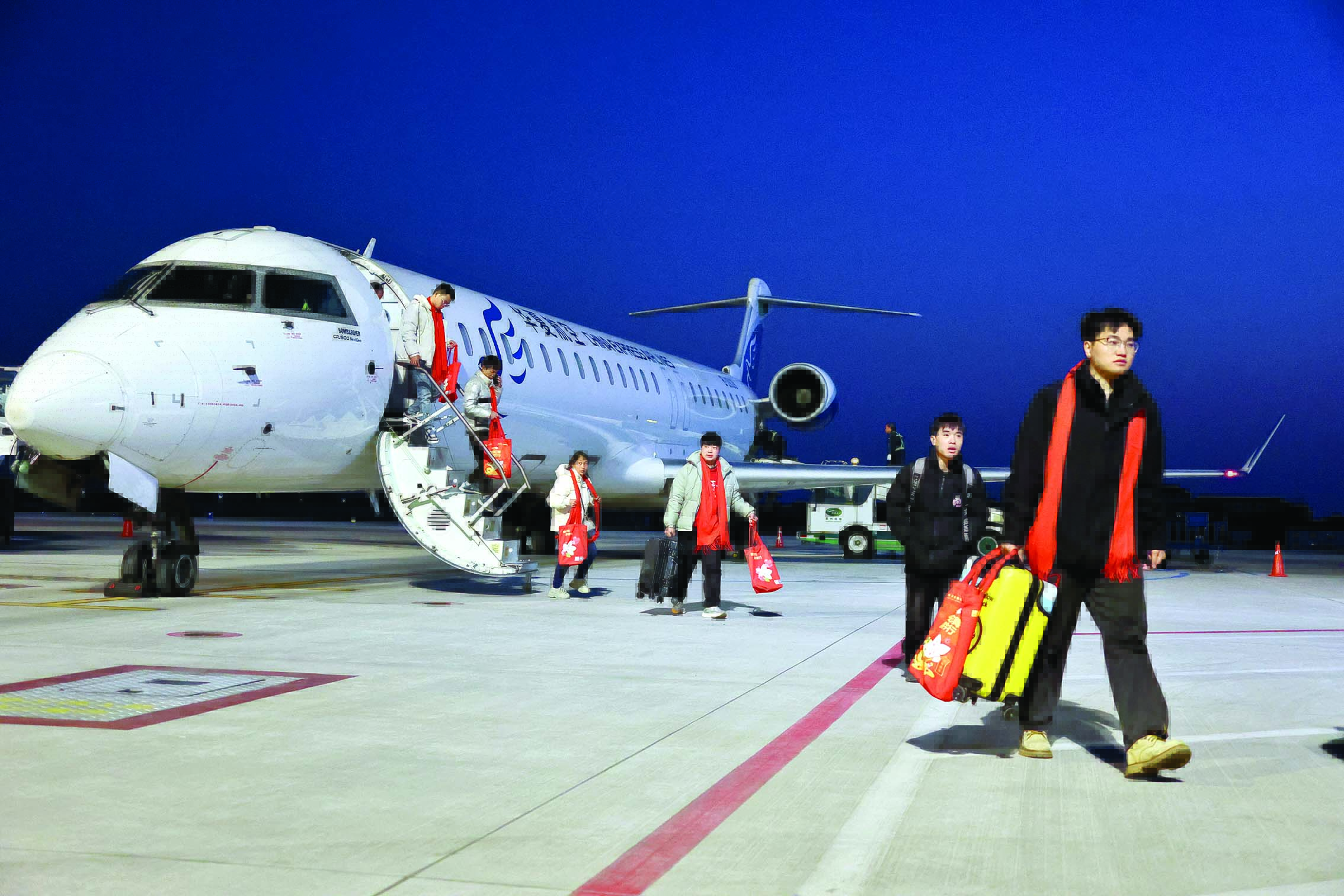 2月4日傍晚,一架從貴州黔西南州興義萬(wàn)峰林機(jī)場(chǎng)起飛的返崗專機(jī),安全降落惠州平潭機(jī)場(chǎng)。這趟班機(jī)是惠州市2025年返崗務(wù)工包機(jī);葜萑?qǐng)?bào)記者李松權(quán) 攝
