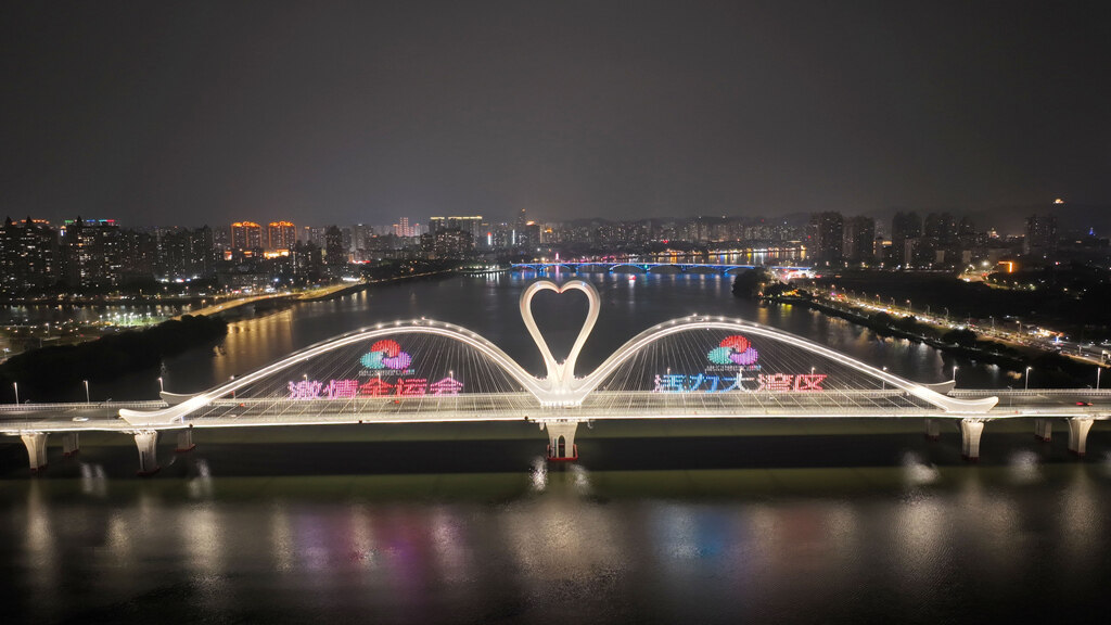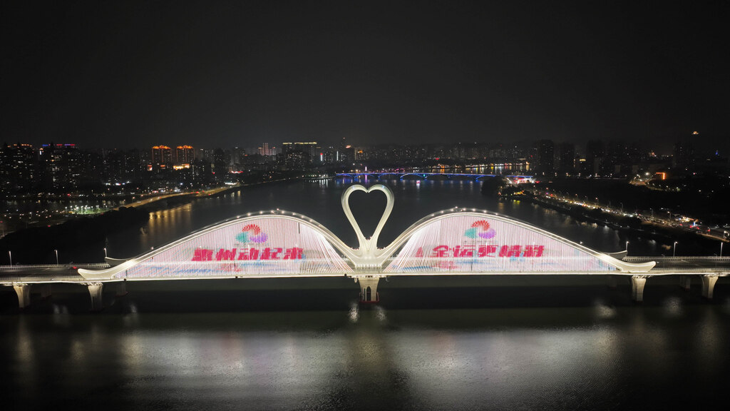 鵝城大橋燈光秀為十五運(yùn)會(huì)打call;葜萑請(bào)記者張藝明 攝