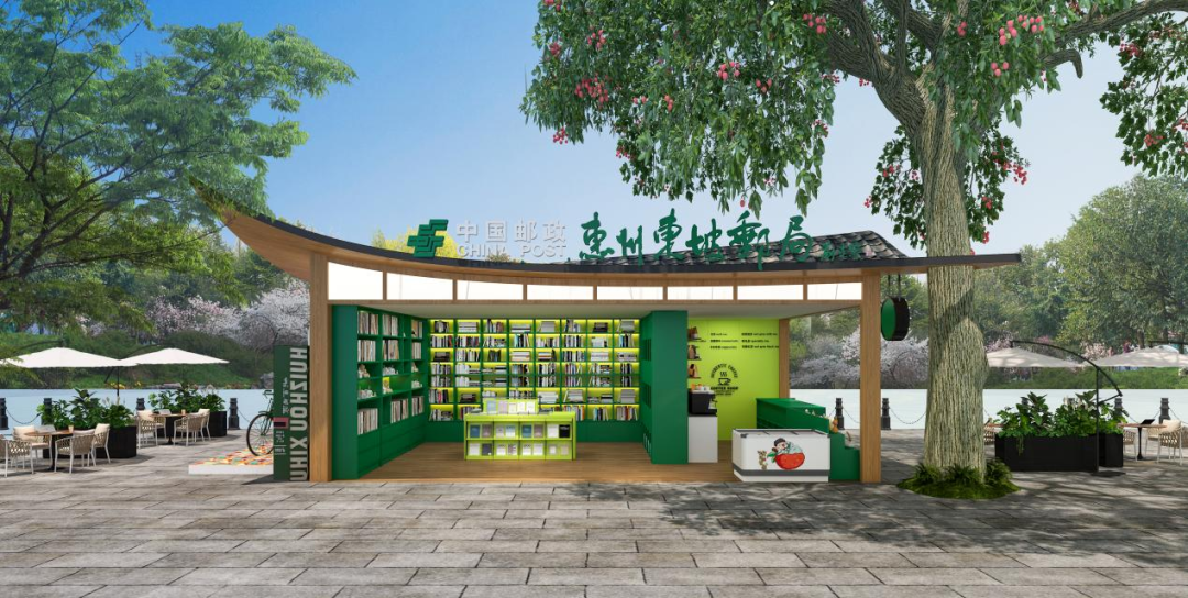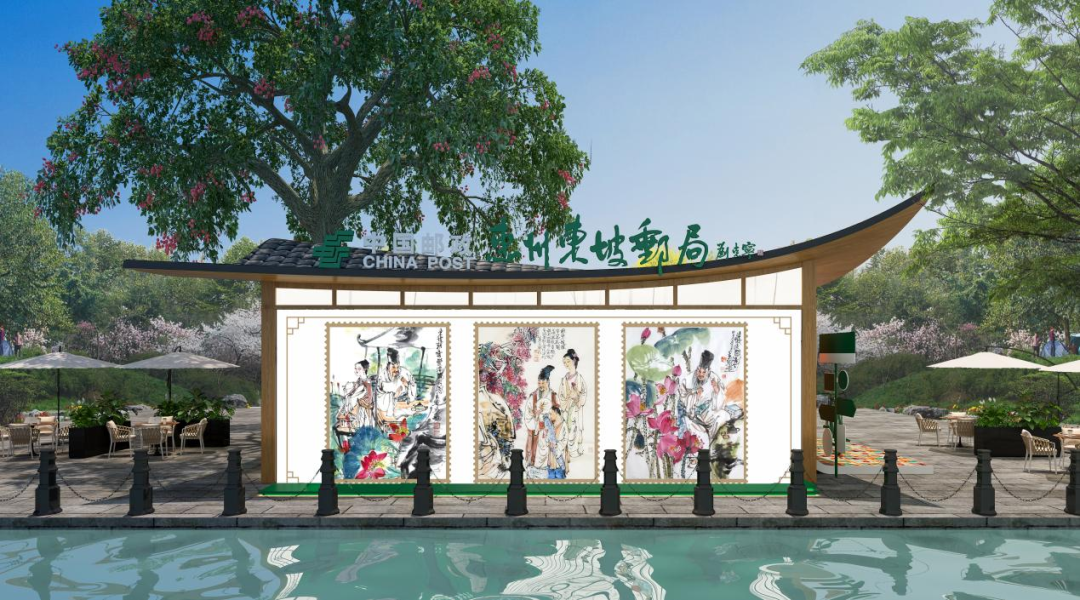 東坡主題郵局提取宋代建筑和東坡文化元素,結(jié)合西湖景觀,融合郵文化元素,并選取當代著名畫家劉克寧老師《問墨蘇東坡》畫作進行設(shè)計建造,連主題郵局的郵筒設(shè)計都別具特色,讓人驚艷!游客不僅可以在東坡郵局寄出給親人朋友的明信片,還可在游西湖時欣賞東坡郵局背面的燈光透視圖——《問墨蘇東坡》精美畫作。惠州東坡郵局將成為西湖景區(qū)文化、東坡文化和城市文化的全新展示窗口!