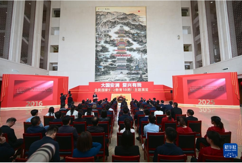 這是4月15日拍攝的“大國安瀾 復(fù)興有我——全民國家安全教育10周年主題展覽”開幕式現(xiàn)場。新華社記者 李鑫 攝