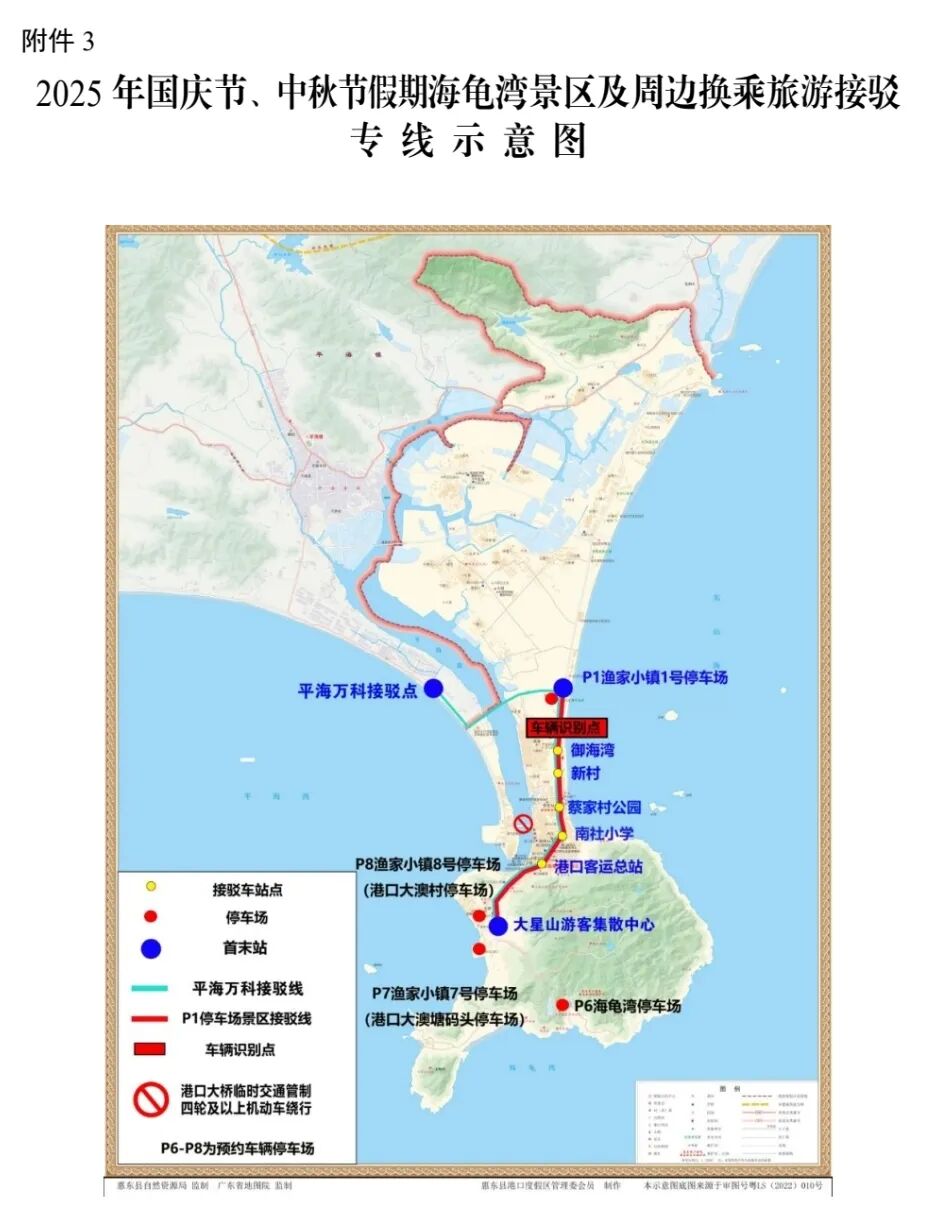 實(shí)施優(yōu)化交通管理期間,7座及以下機(jī)動(dòng)車(chē)進(jìn)入海龜灣景區(qū)實(shí)行網(wǎng)上預(yù)約,預(yù)約成功后憑“通行碼”通過(guò)車(chē)輛識(shí)別點(diǎn);非預(yù)約車(chē)輛集中停放在優(yōu)化管理區(qū)域外5個(gè)停車(chē)場(chǎng);港口大橋(即港口老橋)實(shí)行臨時(shí)交通管制,管制期間四輪及以上機(jī)動(dòng)車(chē)?yán)@行,摩托車(chē)、電動(dòng)自行車(chē)、行人可正常通行。