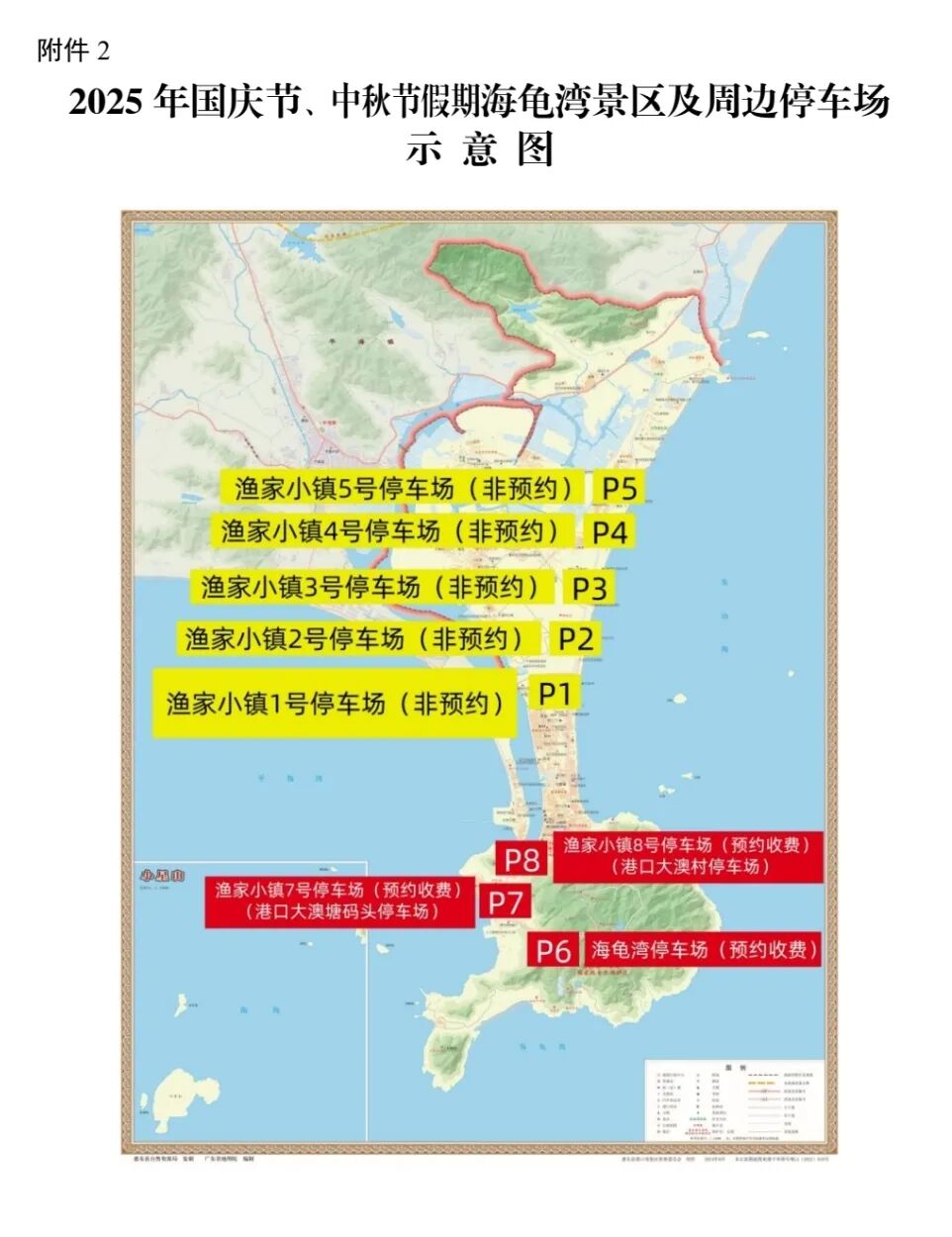 (二)預(yù)約停車(chē)服務(wù)。實(shí)施優(yōu)化交通管理期間,進(jìn)入管理區(qū)域的7座及以下機(jī)動(dòng)車(chē),通過(guò)“惠州海龜灣”訂閱號(hào)預(yù)約3個(gè)收費(fèi)停車(chē)場(chǎng),分別為海龜灣停車(chē)場(chǎng)和漁家小鎮(zhèn)7號(hào)、8號(hào)停車(chē)場(chǎng)。