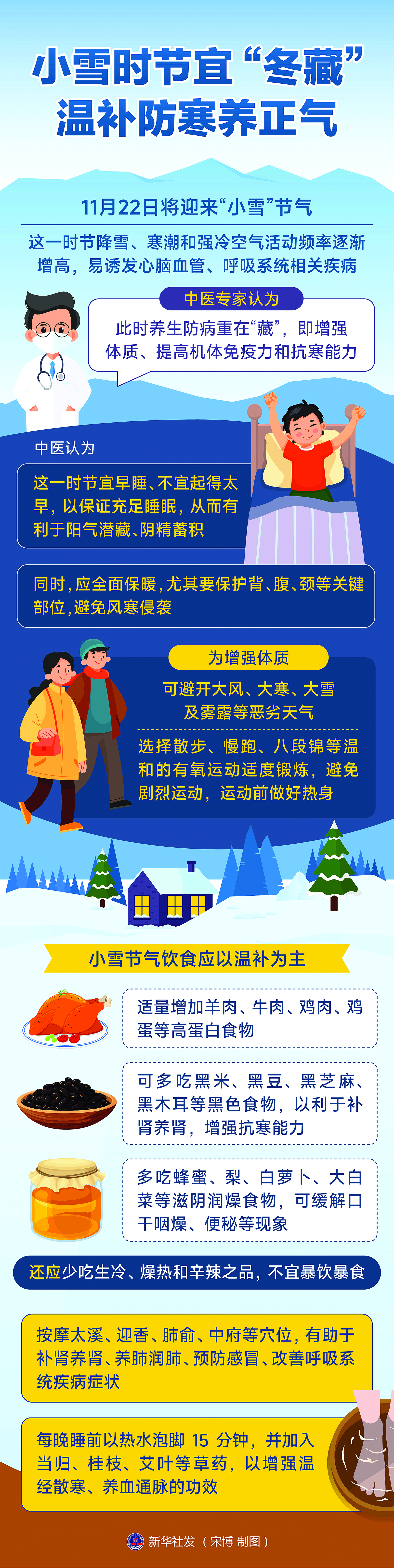 “自然界有‘春生、夏長(zhǎng)、秋收、冬藏’的節(jié)律變化,入冬后人體要避免陽(yáng)氣的損害,要注重‘潛藏’!睆V東省中醫(yī)院主任醫(yī)師楊志敏在發(fā)布會(huì)上表示,要保持充足睡眠,不要持續(xù)熬夜;要防范陽(yáng)氣外泄,做好保暖,特別是頭、頸、腳等部位的保暖;運(yùn)動(dòng)時(shí)不要大汗淋漓,微微出汗即可;在陽(yáng)光充足的時(shí)段曬太陽(yáng),補(bǔ)充陽(yáng)氣。