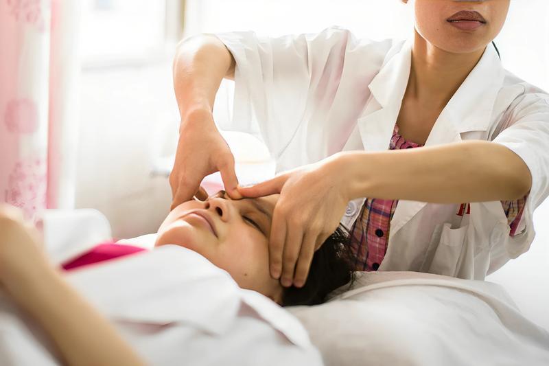 按揉穴位可疏通經(jīng)絡(luò),助力好睡眠;葜萑請笥浾咧荛 攝