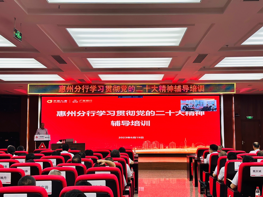廣發(fā)銀行惠州分行學(xué)習(xí)貫徹黨的二十大精神。 廣發(fā)銀行惠州分行供圖