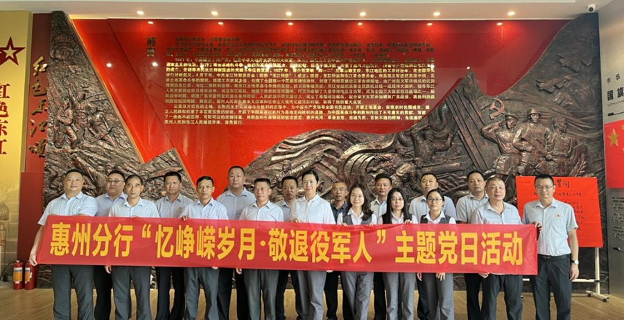 習(xí)近平總書記強(qiáng)調(diào):“要關(guān)愛退役軍人,他們?yōu)楸<倚l(wèi)國(guó)作出了貢獻(xiàn)”。為慶祝中國(guó)人民解放軍建軍96周年,傳承弘揚(yáng)紅色基因,7月31日,廣發(fā)銀行惠州分行組織退役軍人前往惠州市惠城區(qū)紅色東江五育實(shí)踐中心開展“憶崢嶸歲月,敬退伍軍人”主題黨日活動(dòng)。