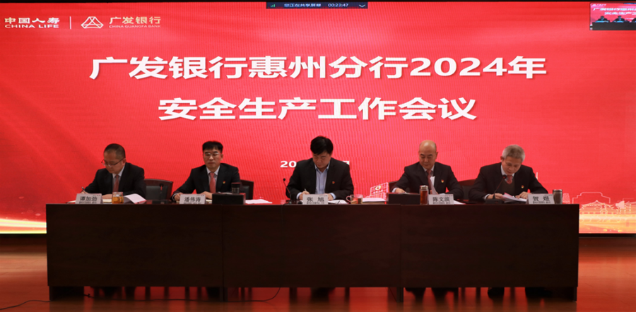 安全迎新春,為全行業(yè)務(wù)發(fā)展保駕護(hù)航。為確保節(jié)前安全生產(chǎn)工作落實(shí)到位,營(yíng)造安全穩(wěn)定的金融環(huán)境,廣發(fā)銀行惠州分行通過(guò)組織召開(kāi)2024年安全生產(chǎn)工作會(huì)議,黨委會(huì)學(xué)習(xí)、內(nèi)部宣傳等多種途徑形式,傳達(dá)學(xué)習(xí)近期國(guó)內(nèi)發(fā)生的火災(zāi)事故案例以及上級(jí)、監(jiān)管機(jī)構(gòu)下發(fā)的關(guān)于加強(qiáng)安全生產(chǎn)的系列文件,認(rèn)真部署春節(jié)、兩會(huì)期間安全生產(chǎn)及火災(zāi)防控工作。及時(shí)落實(shí)部署國(guó)家金融管理總局惠州監(jiān)管分局《關(guān)于開(kāi)展轄內(nèi)安全穩(wěn)定工作》的要求,形成工作小組,組織開(kāi)展自查,進(jìn)一步落實(shí)做好信訪維穩(wěn)、值班值守、應(yīng)急預(yù)案制定、輿情處置等相關(guān)工作。