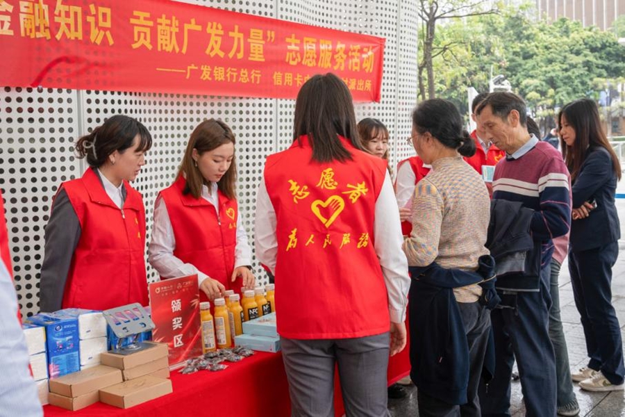 在位于廣州天河區(qū)的花城廣場黨群服務(wù)站,廣發(fā)銀行黨員干部組成一支志愿者服務(wù)隊,為市民帶來了金融知識、防范電信網(wǎng)絡(luò)詐騙、征信知識等一系列金融消保教育宣傳“大餐”。