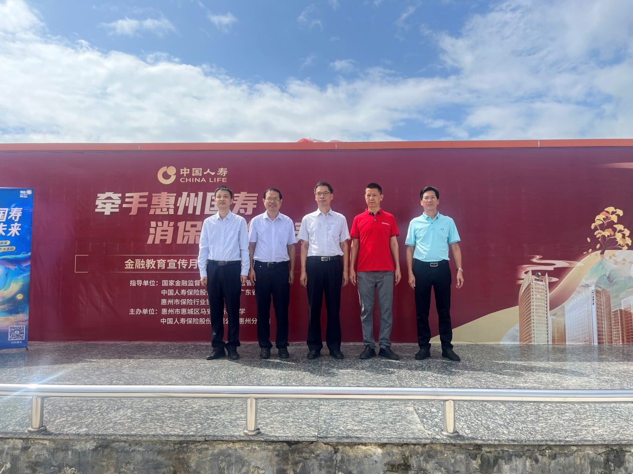 國(guó)家金融監(jiān)督管理總局惠州監(jiān)管分局消?聘笨崎L(zhǎng)楊廣鹽、惠州市保險(xiǎn)行業(yè)協(xié)會(huì)專(zhuān)職副會(huì)長(zhǎng)李統(tǒng)升、惠州市保險(xiǎn)行業(yè)協(xié)會(huì)秘書(shū)長(zhǎng)黃礎(chǔ)峻、惠州市馬安鎮(zhèn)新樓小學(xué)校長(zhǎng)劉志勇、中國(guó)人壽惠州分公司運(yùn)營(yíng)服務(wù)部/消費(fèi)者權(quán)益部經(jīng)理張賢君等參加活動(dòng)。