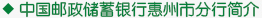 郵儲銀行惠州市分行自2007年12月成立以來,致力于“普惠金融”,服務三農(nóng)、服務中小微企業(yè)、項目貸款和大型企業(yè)融資貸款申請,融入和支持地方經(jīng)濟建設。郵儲銀行充分發(fā)揮網(wǎng)點眾多的優(yōu)勢,以“服務社區(qū)、服務三農(nóng)、服務中小企業(yè)”為宗旨,形成了“申請簡單,放款快速;陽光貸款,不收雜費;貸款成數(shù)高,循環(huán)使用;創(chuàng)新服務、貼近生活;貸款方式靈活”的信貸業(yè)務服務特色,建立起完善的金融服務體系。到目前為止,郵儲銀行惠州市分行在全市有服務網(wǎng)點85個,自助設備363臺,累計在惠州地區(qū)投放資金超過31億元,服務觸角廣布城鄉(xiāng)。