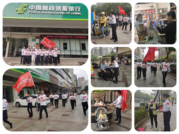 在這個(gè)特別的日子,為積攢匯聚更多的愛,圓更多困難學(xué)子的求學(xué)夢,該行工會主席、副行長趙紫苑帶領(lǐng)該行員工統(tǒng)一穿著郵愛公益服裝,佩戴郵愛公益基金LOGO,高舉郵儲銀行公益志愿者協(xié)會旗幟,分別在惠州市東江公園、東江明珠花園小區(qū)、淡水阿公頂、華南國際建材城、東山公園、半島明珠小區(qū)等地方舉行“3.20郵愛公益日”健步活動(dòng)。通過“郵愛公益”宣傳折頁向路人介紹“郵愛公益基金”發(fā)起的“郵愛自強(qiáng)班”項(xiàng)目為困難學(xué)子圓夢,點(diǎn)燃了學(xué)子的希望之光,邀請路人參與“一塊走”、“公益捐”等郵愛公益項(xiàng)目。郵愛就有力量!郵愛為夢護(hù)航!小區(qū)晨練的李女士表示“郵儲銀行這個(gè)公益活動(dòng)很有意義,掃一掃,走一走,就能捐一捐。呼吁我們要鍛煉身體的同時(shí),也讓我們在健步走的過程中為貧困學(xué)子獻(xiàn)出自己的一份愛心!”