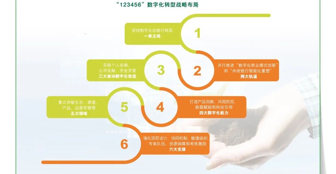 “風控護行”離不開科技賦能。郵儲銀行將數(shù)字化轉型作為全行轉型發(fā)展的重點戰(zhàn)略舉措,探索符合自身特性的轉型方式,在探索中前進,在變革中發(fā)展,規(guī)劃了“123456”數(shù)字化轉型戰(zhàn)略布局,全力推動“數(shù)字生態(tài)銀行”建設。