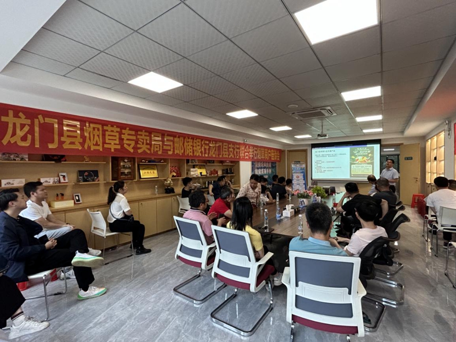 為強化黨建引領業(yè)務發(fā)展作用,深入推進黨建共建工作向縱深發(fā)展,2023年4月21日,郵儲銀行龍門縣支行聯(lián)合龍門縣煙草專賣局開展煙草貸業(yè)務推介會暨反詐宣講活動。活動在龍門縣煙草專賣局“20支”直營店三樓會議室舉行,龍門縣煙草專賣局市場部負責人、“20支”直營店店長、郵儲銀行龍門縣支行副行長劉惠智以及縣城區(qū)域內30多戶煙草零售商戶參加。
