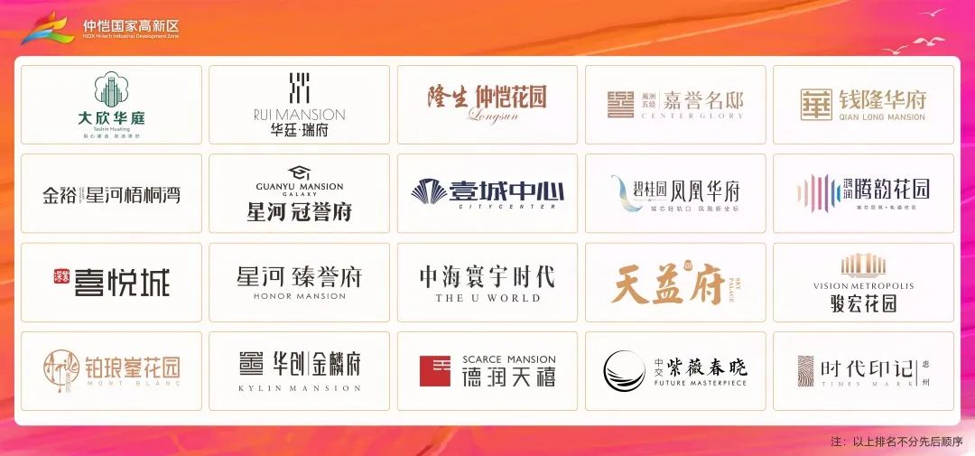 昊翔源壹城中心、天益御府、星河臻譽(yù)府、 金裕星河梧桐灣、華廷瑞府、隆生仲愷花園、鴻潤(rùn)騰韻花園、大欣華庭、禹洲五經(jīng)嘉譽(yù)名邸、時(shí)代印記、錢(qián)隆華府