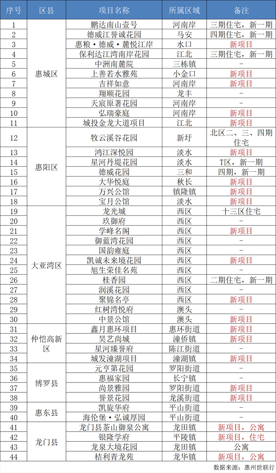 2024年惠州新房潛在供應(yīng)項(xiàng)目。數(shù)據(jù)來(lái)源:惠州世聯(lián)行