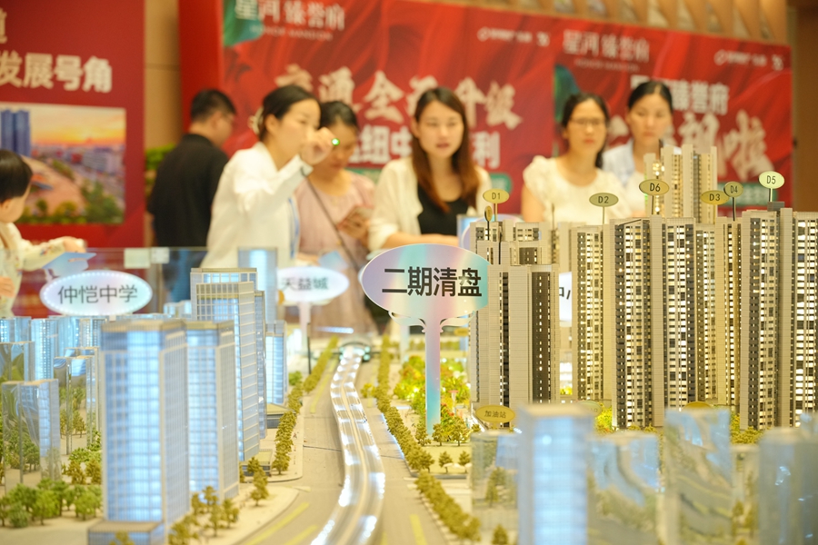 某樓盤營銷中心,購房者在看沙盤。 東江時(shí)報(bào)記者周楠 攝