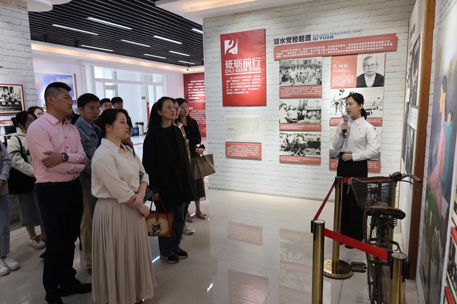 在被譽為廣東鎮(zhèn)街黨校一面“旗幟”的江門市新會區(qū)雙水鎮(zhèn)委黨校,大亞灣學習小組一行觀摩了黨校展廳、培訓室、初心大講堂、黨群服務中心等陣地,深入了解其培訓形式和特色課程等內(nèi)容,并結合黨校建設中存在的問題與雙水鎮(zhèn)委黨校工作人員進行深入研討。作為一所擁有60多年辦學經(jīng)驗的鄉(xiāng)鎮(zhèn)黨校,該校黨員培訓教育傳承與創(chuàng)新的工作經(jīng)驗,讓大亞灣學習小組受益良多、深受啟發(fā)。