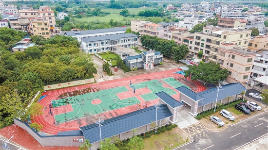 “原來的校門較為簡單,只砌了兩邊的磚柱,安裝了鐵門。后來考慮到校門的美觀,以及學(xué)校功能的需求,2022年由鹿頸村委會籌資重建校門!毖葸_(dá)學(xué)校校長林淑軍介紹,如今學(xué)校的心理輔導(dǎo)室、體育器材室、保安室等功能室安置于此,校門的社會屬性、實(shí)用功能、裝飾美化得以展現(xiàn)。