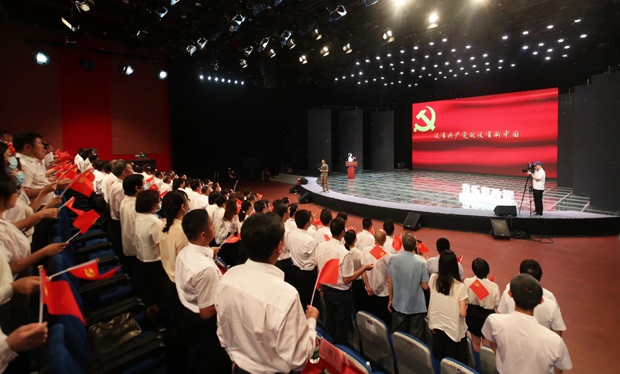 感人肺腑的故事,沉浸式的場景,蕩氣回腸的故事……6月28日上午,市委宣傳部直屬機關(guān)黨委、市互聯(lián)網(wǎng)行業(yè)黨委慶祝建黨102周年主題黨日活動在惠州市廣播電視臺1號演播廳舉行。來自市委宣傳部直屬機關(guān)黨委、市互聯(lián)網(wǎng)行業(yè)黨委的200多名黨員干部同上一堂音樂思政課,以“音樂視頻+思政理論”的創(chuàng)新模式,聆聽先輩的奮斗故事、時代楷模的感人事跡,汲取奮發(fā)前進的精神力量。