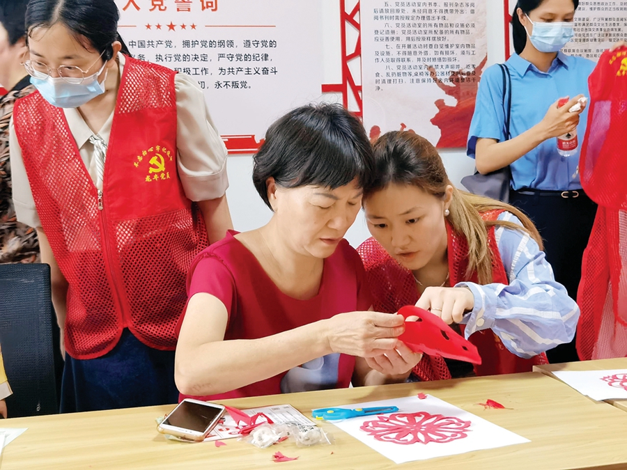 “如果在小區(qū)就能參加一些活動(dòng)就好了!毙侣(lián)社區(qū)組織“回家黨員”走訪群眾時(shí)了解到國(guó)華湖畔新城小區(qū)多個(gè)長(zhǎng)者的共同“心愿”。隨后,社區(qū)黨委聯(lián)合“回家黨員”立即展開(kāi)行動(dòng),籌辦長(zhǎng)者服務(wù)活動(dòng)。經(jīng)多方協(xié)調(diào)對(duì)接,一場(chǎng)“巧手剪紙·樂(lè)享生活”志愿服務(wù)活動(dòng)在小區(qū)紅色驛站內(nèi)展開(kāi),吸引了小區(qū)15名長(zhǎng)者參加。