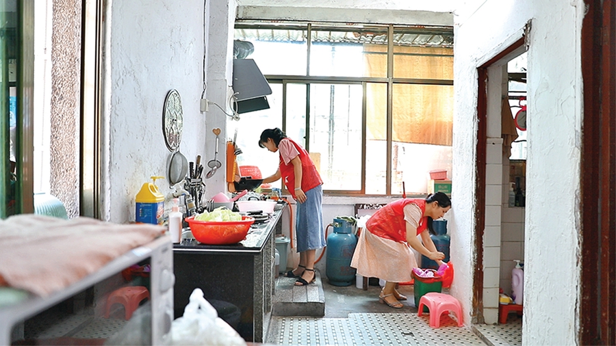 廚房里清洗食材和炒菜的聲音交雜傳來,七旬嚴(yán)婆婆倚著墻看著兩個忙碌的身影,內(nèi)心很是感動。