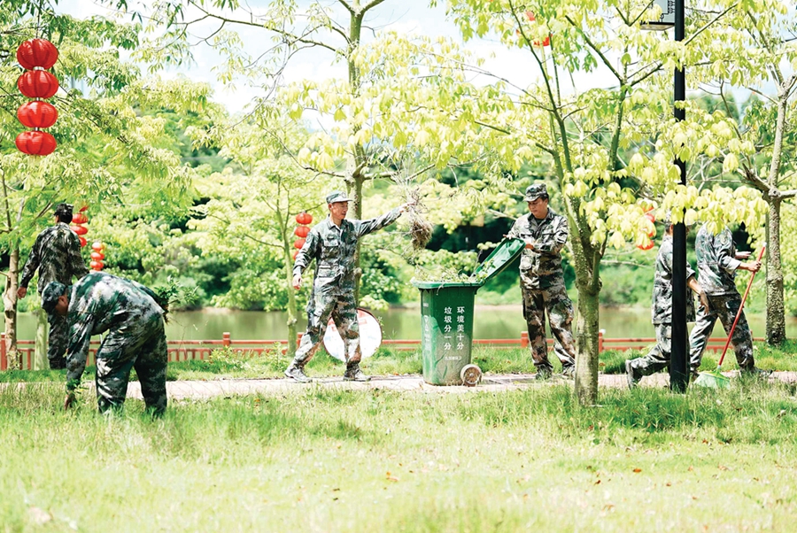 港口“英雄民兵連”新時(shí)代志愿服務(wù)隊(duì)在平江村清潔環(huán)境;葜萑?qǐng)?bào)記者李苗 攝
