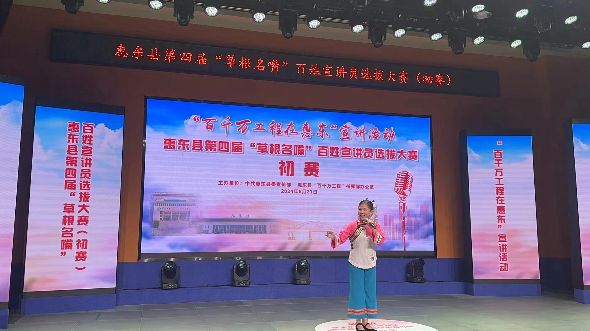 據(jù)了解,“草根名嘴”百姓宣講員選拔大賽是惠東縣一項(xiàng)重要的文化活動(dòng),旨在發(fā)掘和培養(yǎng)具有地方特色的宣講人才,推動(dòng)文化事業(yè)繁榮發(fā)展;顒(dòng)從各行業(yè)各部門、鄉(xiāng)鎮(zhèn)宣傳委員、村(社區(qū))干部、中小學(xué)教師、勞動(dòng)模范等群體中選拔優(yōu)秀人才,宣講隊(duì)成員從日常生活中汲取養(yǎng)分,從身邊典型中尋找能量,結(jié)合紅色革命、鄉(xiāng)村振興、愛崗敬業(yè)、好人好事等,向廣大基層干部群眾講述一個(gè)個(gè)追夢(mèng)圓夢(mèng)的故事。
