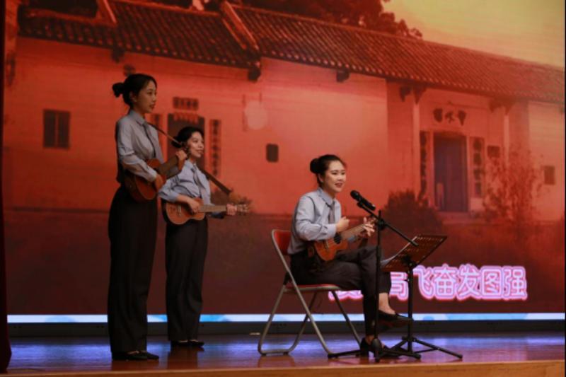 葉挺紀(jì)念館宣講小分隊(duì)采用“音樂(lè)彈唱鐵軍精神”和“剪影情景劇表演葉挺生平”的宣講形式,生動(dòng)呈現(xiàn)葉挺將軍從青少年時(shí)期樹(shù)立“振污世、起衰溺”革命理想,到革命戰(zhàn)爭(zhēng)時(shí)期勇于擔(dān)當(dāng)敢于犧牲,對(duì)黨和人民無(wú)限忠誠(chéng)、為民族解放事業(yè)獻(xiàn)出一切的偉大一生。兩地青少年共同感悟葉挺將軍的崇高氣節(jié)和偉大的“鐵軍精神”。