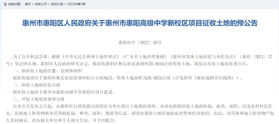 女主播從惠陽區(qū)人民政府關(guān)于惠州市惠陽高級中學新校區(qū)項目征收土地的預公告了解到。