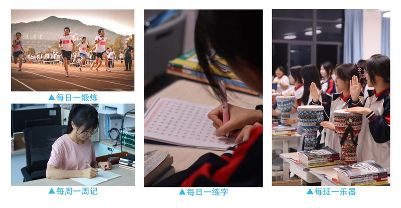 每日一鍛煉,每周一周記,每日一練字,每班一樂(lè)器。
