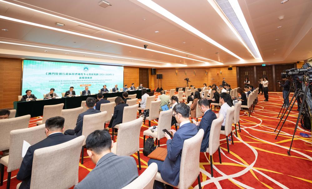 這是11月1日拍攝的澳門特區(qū)政府公布《澳門特別行政區(qū)經(jīng)濟(jì)適度多元發(fā)展規(guī)劃(2024-2028年)》新聞發(fā)布會現(xiàn)場。新華社記者 張金加 攝