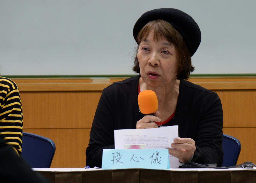 ??2023年12月23日,臺北中山女中退休語文老師段心儀在“歷史教育新三自運動協(xié)會”記者會上發(fā)言。新華社記者 陳鍵興 攝