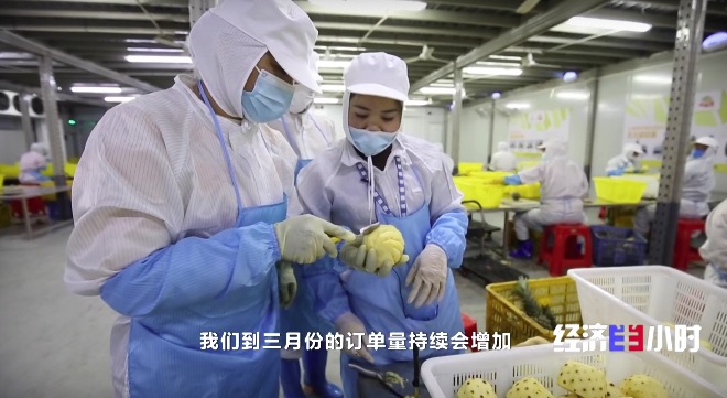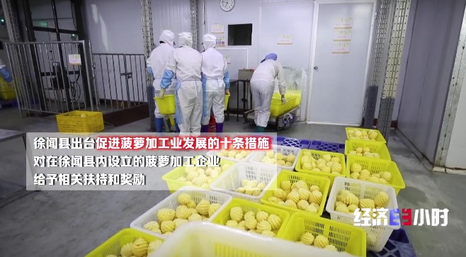 廣東省徐聞縣農業(yè)農村局黨組副書記 楊帆帆:截至目前,我們本地的小菠蘿加工企業(yè)數量已經達到了17家,對小菠蘿銷售起到極大的促進作用。